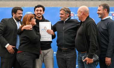 El jefe comunal encabezó un acto de entrega de los títulos de propiedad a vecinos de la localidad de Luis Lagomarsino. Estuvo acompañado por autoridades locales y provinciales.